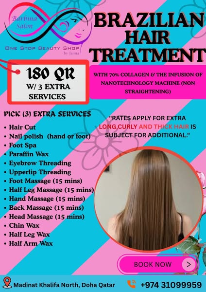 🔹 Brazilian Hair Treatment for just 180 QAR + 3 free services