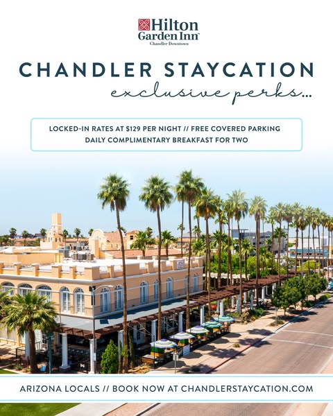 搜索关键词 Chandler staycation, Hilton Garden Inn, Arizona travel, family fun Chandler, downtown Chandler hotels, staycation deals, Arizona summer vacation, local brews Chandler, craft cocktails Chandler, things to do Chandler优势 Affordable rates,Convenient location in Downtown Chandler,Includes breakfast and parking,Close to family-friendly activities and nightlife