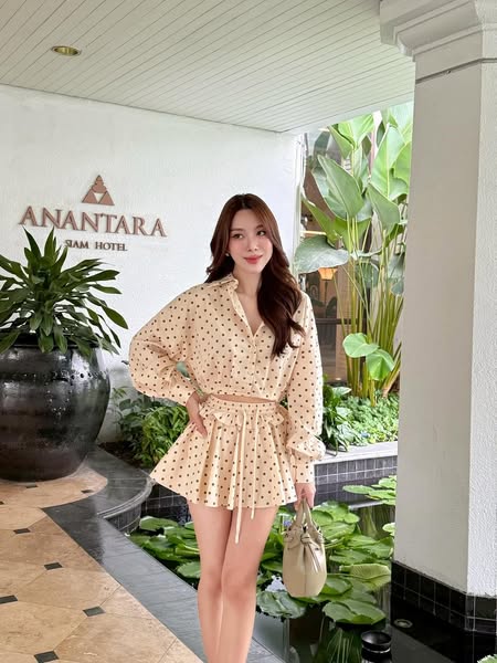 𝐃𝐞𝐭𝐚𝐢𝐥 : เซตเสื้อเชิ้ตทรงครอปแขนยาว ช่วงเอวเข้ารูป เนื้อผ้าเป็นลายพื้นครีมจุดน้ำตาล + กระโปรงสั้นจั้มเอว ช่วงขอบเอวระบายสั้นๆ 1 ชั้น ด้านในเป็นกางเกงโดยใช้ผ้าเดียวกับตัวนอก โซคิ้วท์มาก