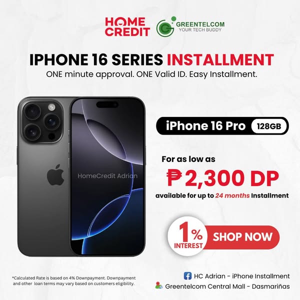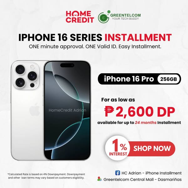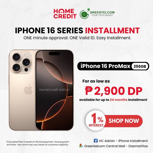 搜索关键词 iPhone installment, Home Credit, low downpayment, flexible terms, easy application, Apple warranty, phone financing, smartphone installment, Green Telecom Dasmarinas, Savemore Salitran优势 Low Downpayment,Flexible Terms (up to 24 months),Easy Application (1 Valid ID),Fast Approval (1 minute),Same Day Release,Store Freebies,Brand New & Sealed Units,1 Year Apple Warranty,Authorized Apple Service Center,NTC Approved / Open Line