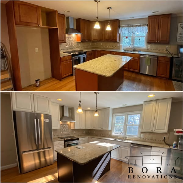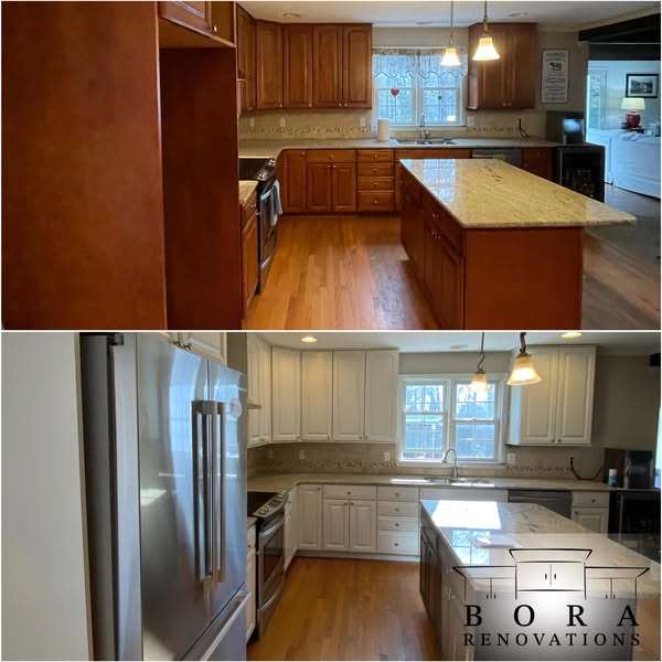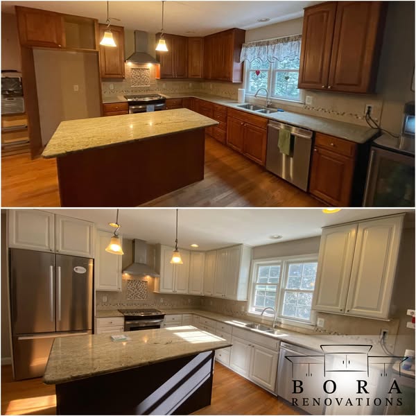 ⭐️⭐️⭐️⭐️⭐️ “We are very satisfied with the work performed by Bora. We have been doing our part to spread the word about your company and the services offered as well. A good friend of us was over this weekend and couldn't believe the transformation of our kitchen simply by painting (I make the work you did sound easy but we know it wasn't) the cabinets.