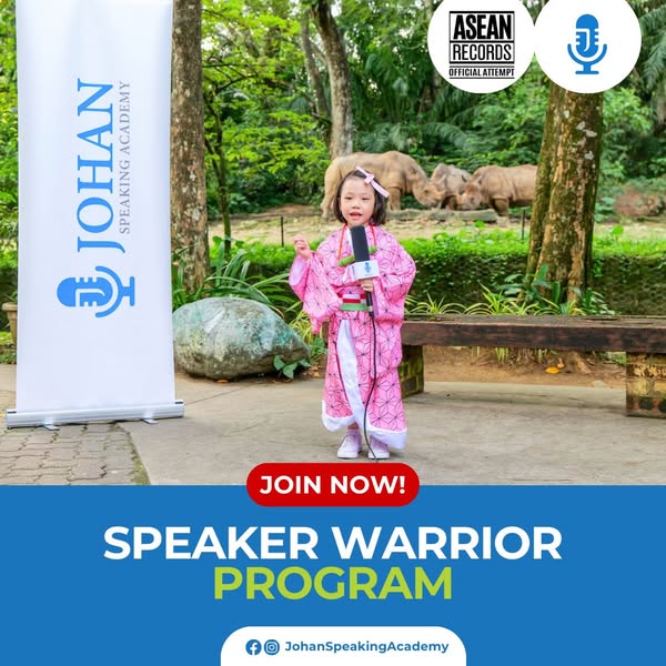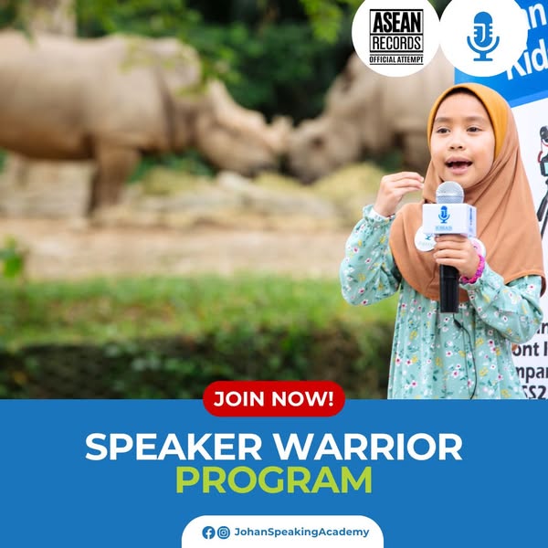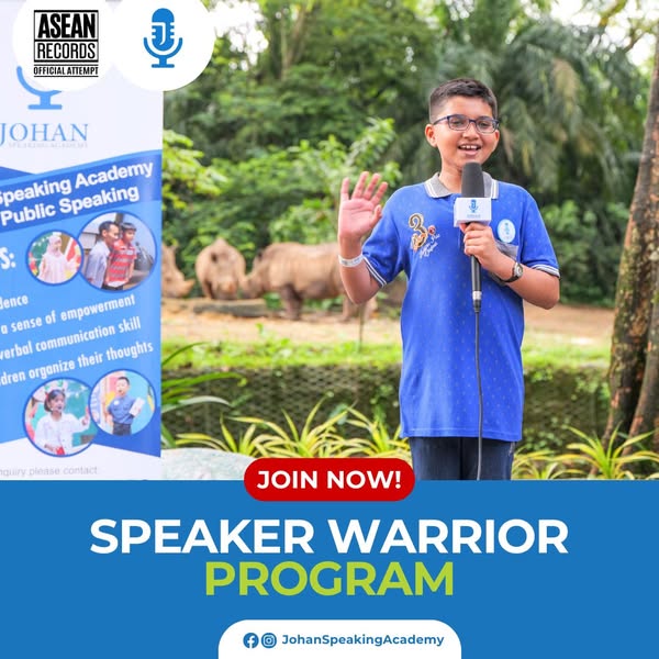 搜索关键词 kids public speaking, brand ambassador program, public speaking training, confidence building, kids activity, johan speaking academy, zoo negara, may intake, speaker warrior program, kids education优势 Develop public speaking skills,Build confidence,Create lasting memories and friendships,Potential participation in ASEAN record attempt,Exclusive certificate