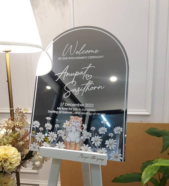 搜索关键词 acrylic sign, custom sign, wedding sign, event signage, laser cut acrylic, digital UV print, acrylic price, acrylic welcome sign, acrylic wedding ,acrylic company logo优势 Fixed price for all designs (990 THB),Free delivery,Fast turnaround (1-3 days),UV printing with unlimited colors,Custom sizes available