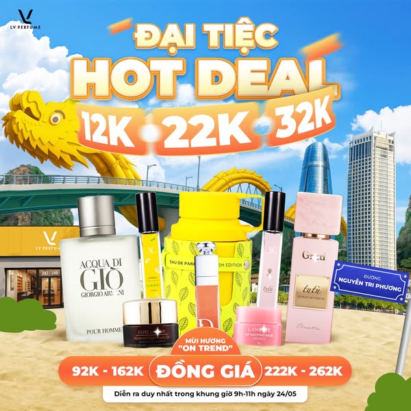 搜索关键词 LV Perfume, Beauty Products, Fragrance Sale, Vietnam, Da Nang, Anniversary Sale, Discount, Hot Deals, Limited Time Offer, Cosmetics优势 Up to 70% discount,Hot deals starting from 12k VND,Special offers during Golden Hours,Gift with purchase,Wide range of products
