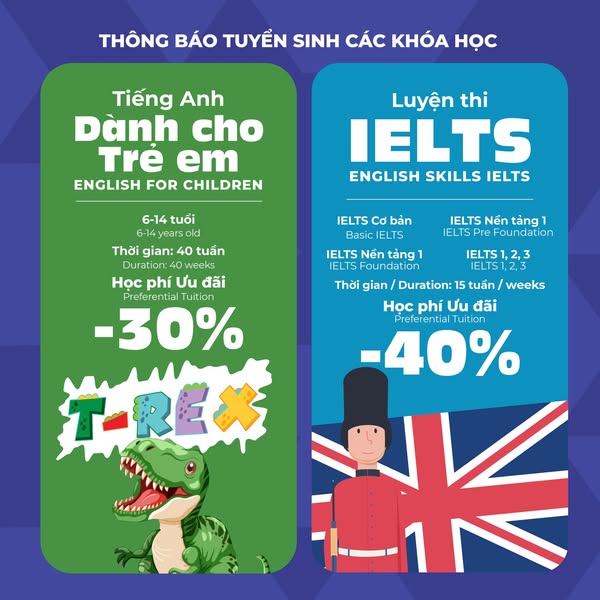 💰 Comprehensive IELTS pathway suitable for all levels, starting from 1,875,000 VND per month for intensive training in all four skills