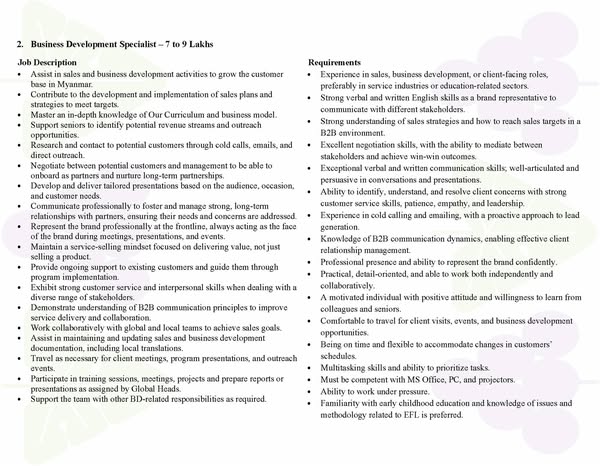 搜索关键词 GrapeSEED Myanmar Jobs, Business Development Specialist, Marketing Specialist, International Environment, Educational Services, Yangon Jobs, Negotiable Salary, Incentive Bonuses, Health Checkup, Career Opportunities优势 Negotiable Salary,International Environment,Annual Salary Review,Incentives and Bonuses,Health Checkup,Transportation Allowance,Communication Allowance