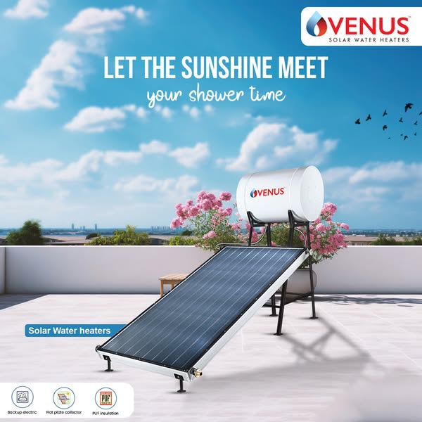 Warms your water while keeping your energy costs down. The HALO Model features a porcelain enamel-coated glass-lined tank, a flat plate collector with 100% black-coated aluminum fins for efficient heat transfer, and a powder-coated MS stand for durability and rust resistance. It offers long-lasting, corrosion-proof performance, withstands up to 5 bar pressure, and includes 5 cm thick PUF insulation to reduce heat loss, backed by a 7-year guarantee on the inner tank.