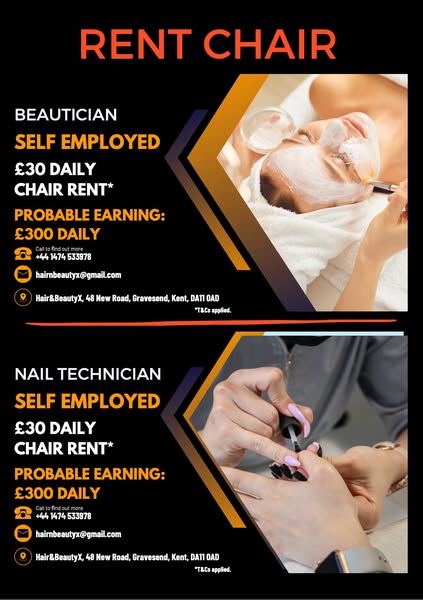 🔥 PLUS — Want to earn BIG? Rent a chair for nail & beauty services for just £30/day and potentially earn £300! Your dream business starts here!