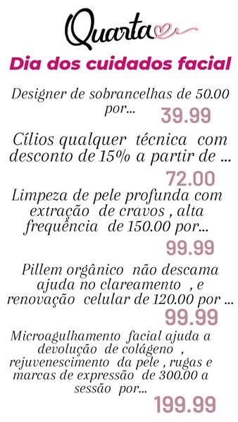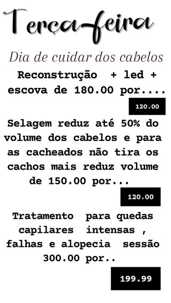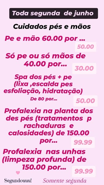 Não perca essa oportunidade de fazer quase tudo com desconto especial aqui no studio janayna Santana, desconto especial de segunda a quarta dessa semana !