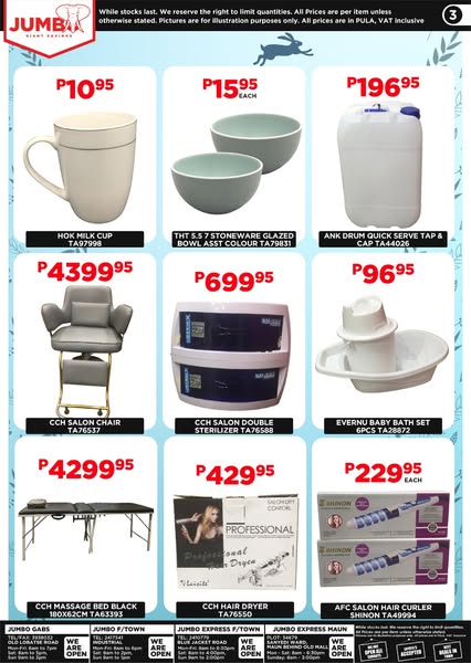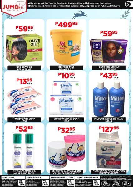 搜索关键词 Easter weekend sale, Jumbo grocery, Botswana savings, Grocery essentials, Limited time offer, Discounted products, Shop and save, Old Lobatse Road, Francistown Industrial, Maun Sanyedi Ward优势 Massive Savings,Wide range of products,Multiple Locations