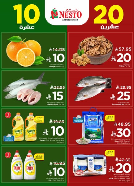 🔥Nesto 10-20 Offer!🔥Discover amazing deals where every product is priced at just 10 or 20 SAR! 🛍️💰 Stock up on groceries, essentials, and more at unstoppable prices.