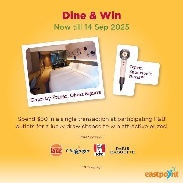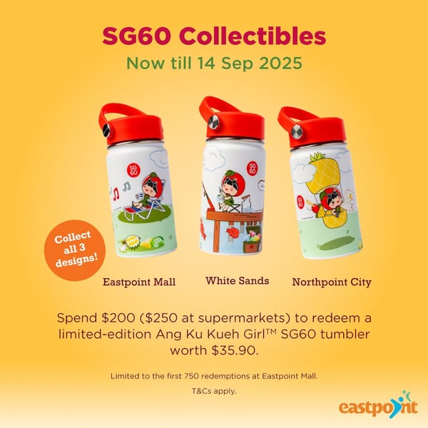 It’s a celebration of flavours and rewards at Eastpoint Mall!🎊 Shop and dine your way to limited-edition Ang Ku Kueh Girl™ SG60 tumbler worth $35.90, FRx gift cards, and lucky draw prizes, from now till 14 Sep 2025.