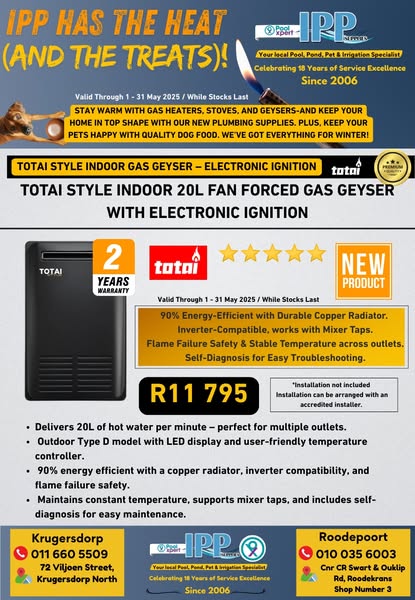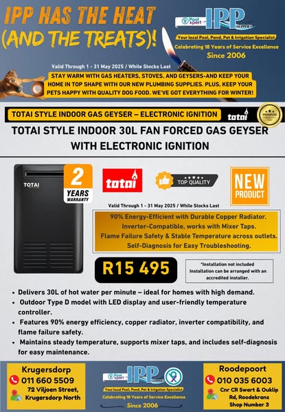 🔥 Brand-New TOTAI Gas Geysers – Now at IPP Supplies! 🔥