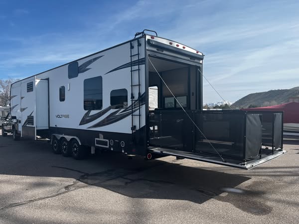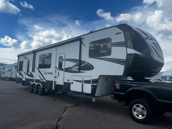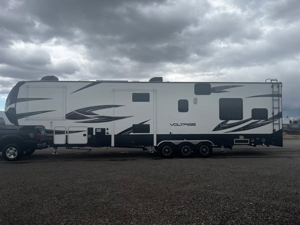 搜索关键词 used toy hauler, dutchmen voltage, voltage 3805, rv for sale, fifth wheel, boondocking rv, toy hauler idaho, garage rv, onan generator, solar rv优势 Excellent Condition,Large 14 Foot Garage,Solar System for Boondocking,Auto Leveling Jacks,Washer/Dryer Hookups,Bath and a Half