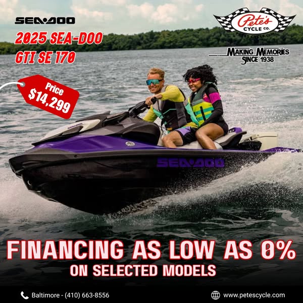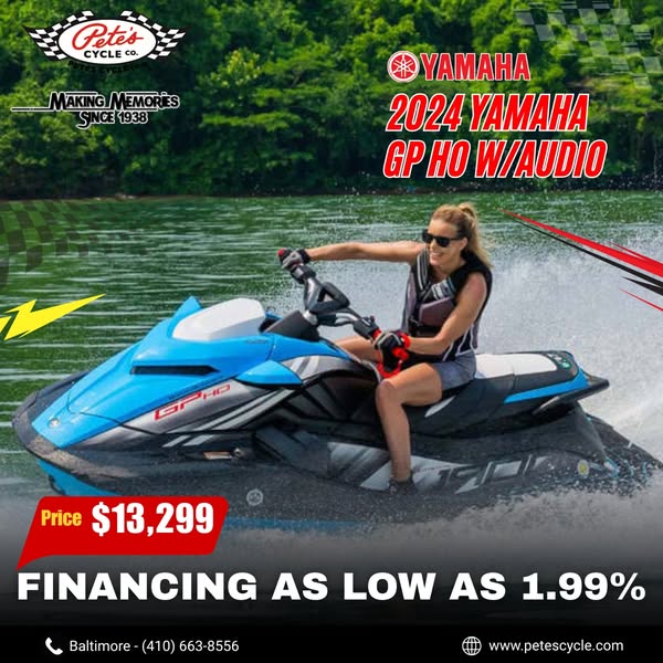 Built to dominate the water. Premium racing blue with audio and supercharged performance. Ride out with Pete’s Cycle Co. — hit See More and own the wave