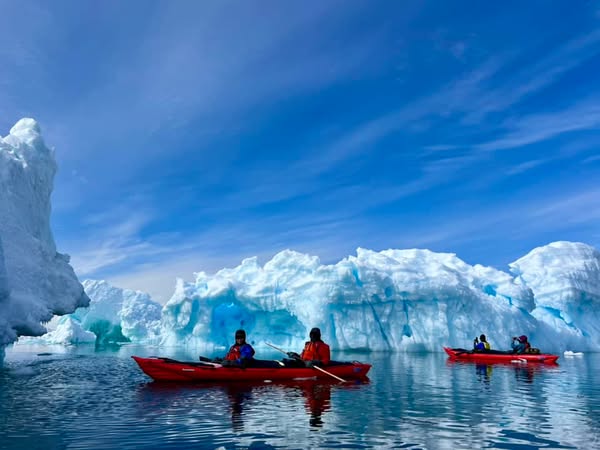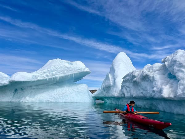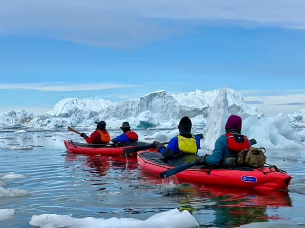 搜索关键词 Greenland kayaking, Ice kayaking, Arctic adventure, Ilulissat tour, Glacial water, Kayaking in ice, Kayak tour, Greenland adventure, Arctic kayaking adventure, Kayaking experience优势 Unique experience,Beautiful scenery,Pure glacial water,Quiet and peaceful environment