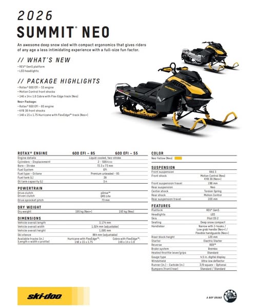 2026 "Deep Snow" immikkut neqerooruteqarpugut Ski-Doo Summit aammalu Freeride qamuteralaat taakku tamarmik