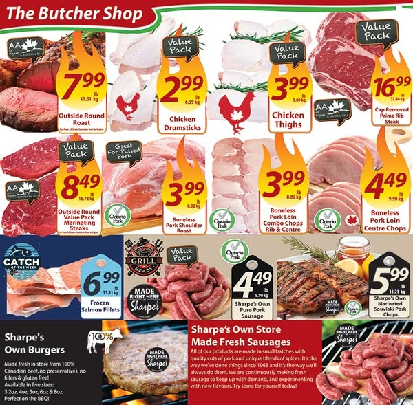 搜索关键词 Sharpe's Food Market, weekly deals, Ontario produce, chicken wings, pork shoulder, back to school, grocery shopping, food sale, discount prices, family meals优势 Sharp pricing and Deals,Fresh, local Ontario produce,Convenient meal and snack options,Value packs and budget-friendly choices