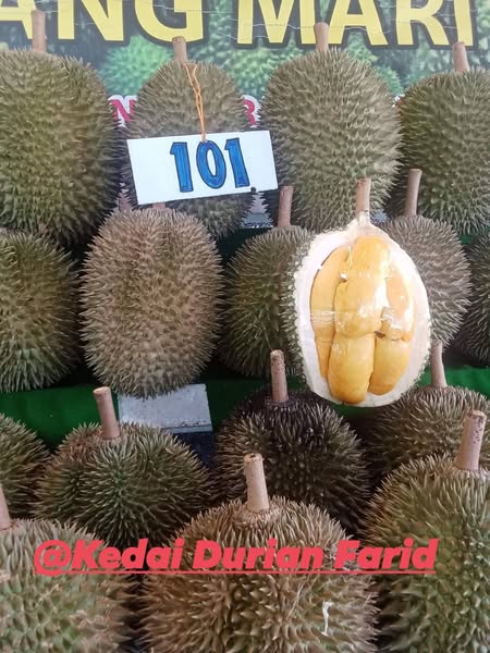 搜索关键词 Durian promotion, Fresh Durian, Musang King, Durian Kampung, Johor Durian, Pahang Durian, Durian Sale, Durian Offer, Best Durian, Durian near me优势 Wide variety of durian types (Kampung, Kahwin, Musang King),Fresh daily from the farm,Affordable prices starting from RM9,Taste before you buy option