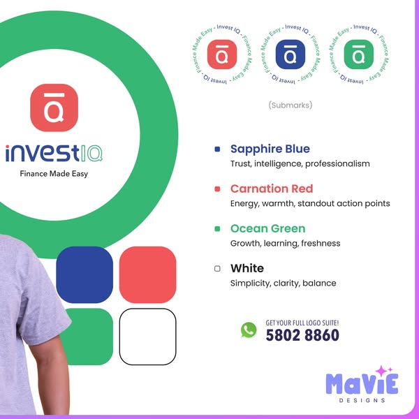 搜索关键词 Mauritius designer, brand design, logo suite, graphic design, visual branding, small business Mauritius, InvestIQ, youth finance, professional logo, complete logo suite优势 Professional brand image,Consistent branding across platforms,Helps youth understand finance,Visually appealing system