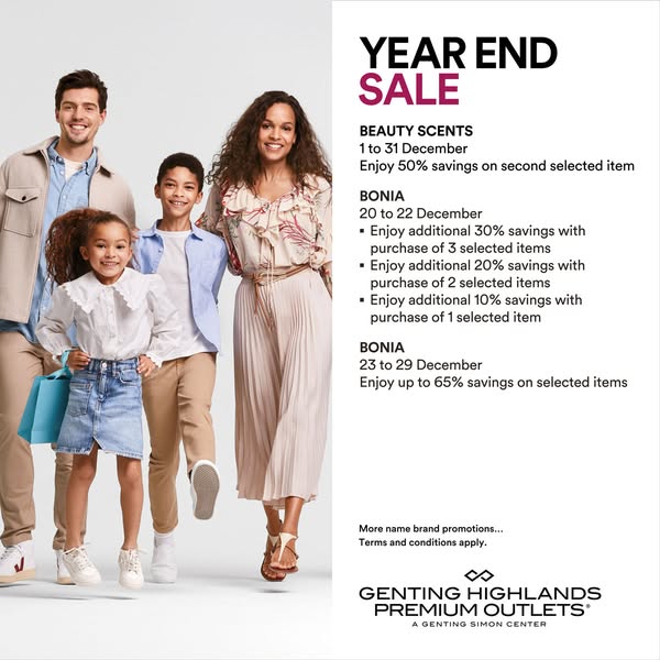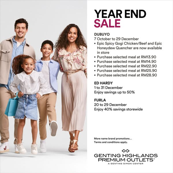 ✨ Celebrate the festive season with incredible savings at Genting Highlands Premium Outlets Year End Sale, 20–29 December 2024!