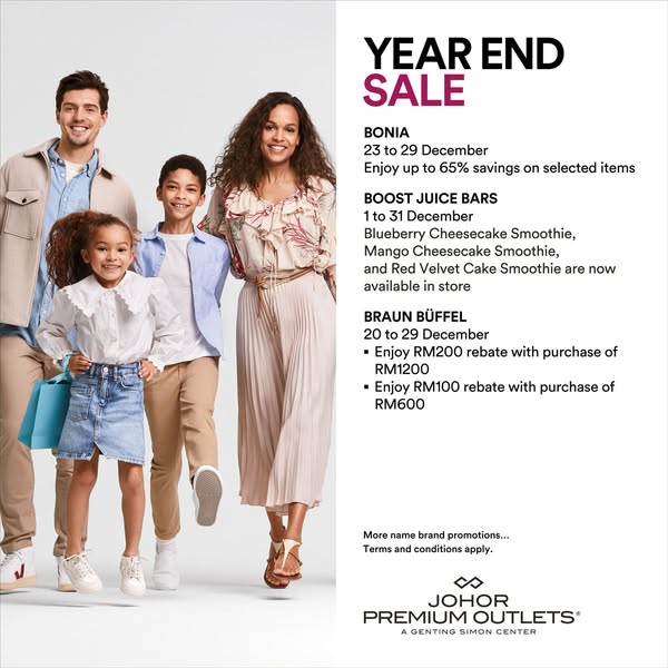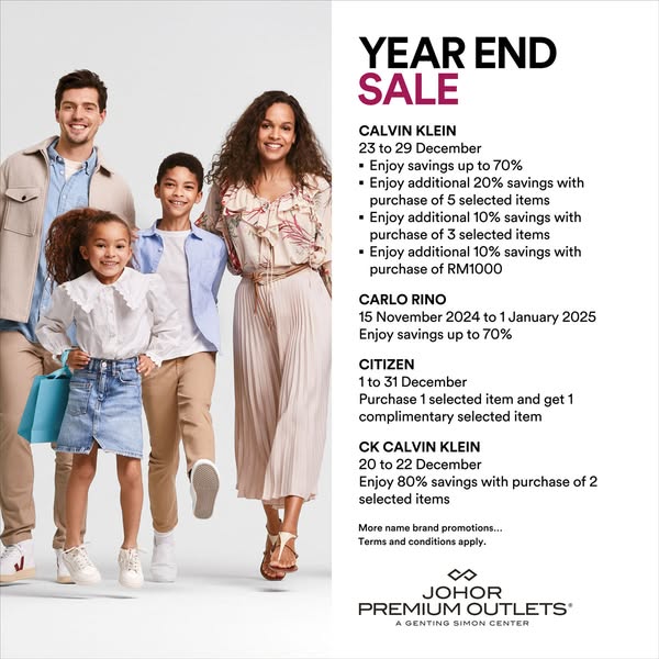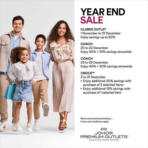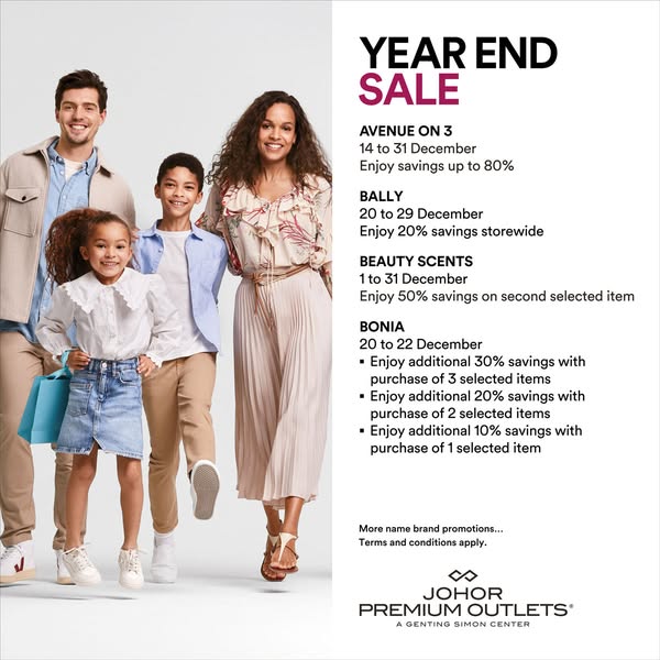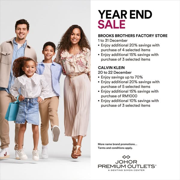 搜索关键词 Johor Premium Outlets, Year End Sale, Discount Shopping, Holiday Deals, Fashion Accessories, Homeware Sale, Malaysia Shopping优势 Up to 80% savings,Wide range of brands,Holiday shopping opportunity