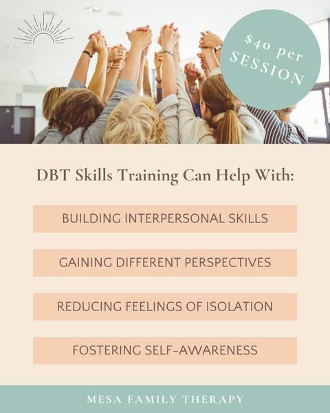 搜索关键词 DBT skills group, stress management, relationship skills, Dialectical Behavior Therapy, mental health support, coping strategies, emotional regulation, interpersonal effectiveness, distress tolerance, mindfulness training优势 Stress Management Skills,Improved Relationships,No Individual Therapy Required