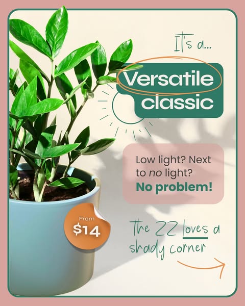 搜索关键词 ZZ Plant, Easy Care Plants, Low Maintenance Houseplant, Indoor Plants, Brickell Plant Dad, Plants for Beginners, Unkillable Plant, Houseplant Miami, No Fuss Plant, Forgetful Waterer优势 Extremely low maintenance,Tolerant of neglect,Requires little water,Thrives in low light,Affordable price