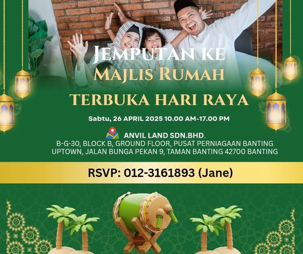 搜索关键词 Hari Raya Open House, Anvil Land, Raya Celebration, Property Investment, Malaysia Property优势 Festive Celebration,Delicious Food,Joyful Atmosphere,Networking Opportunity