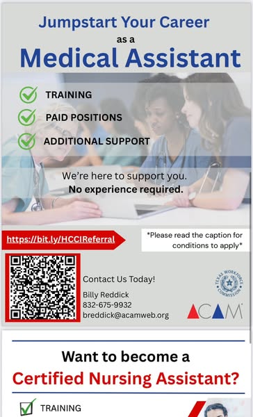 搜索关键词 health career training, free nursing class, dental assistant jobs, medical assistant training, cna training houston, online healthcare courses, state approved certification, clinical skills development, multiple healthcare certifications, healthcare career referral优势 No Cost,Online Flexibility,Clinical Skills Training,Multiple Certifications Available,State Approved,Payment plans available
