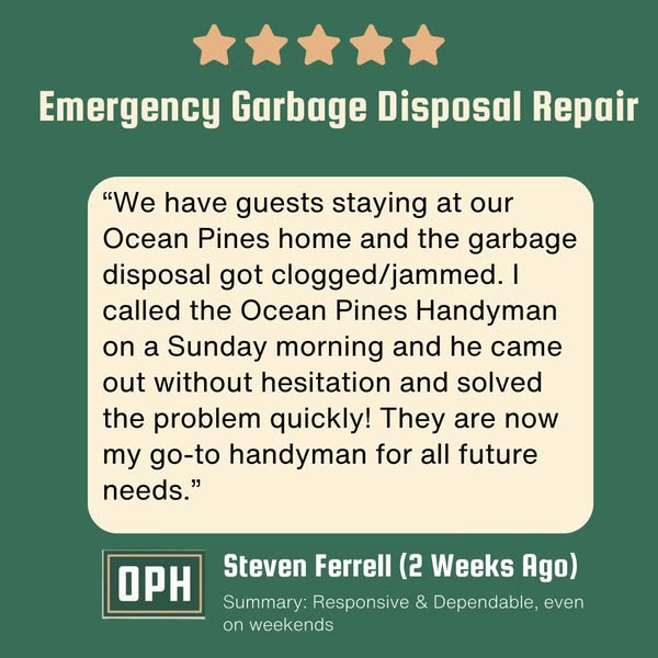 #OceanPinesHandyman #OPHandyman #OceanPinesMD #OceanPinesMaryland #OceanCityMD #OceanCityMaryland #BerlinMD #BerlinMaryland #OceanCityRealEstate #OceanCityBoardwalk #EasternShoreLiving #FiveStarService #LocalPros #HomeRepairExperts #HandymanServices #CustomCarpentry #EmergencyRepairs #HomeImprovement #DeckBuilders #CabinetRepair #RampBuild #SupportLocalBusinesses #MarylandContractor #ReliableWork #HomeProjectsDoneRight #CustomerLove #HandymanLife