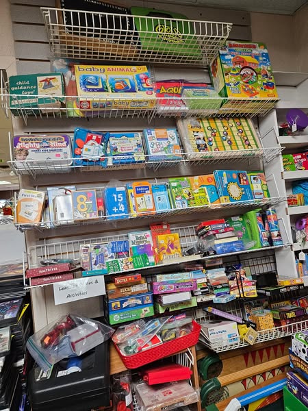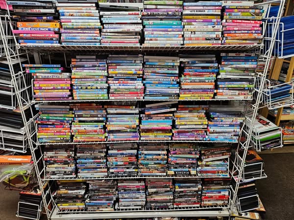 Board games, DVDs, CDs, Albums, 45s, Cassette tapes, 8-tracks, video games, VHS tapes.