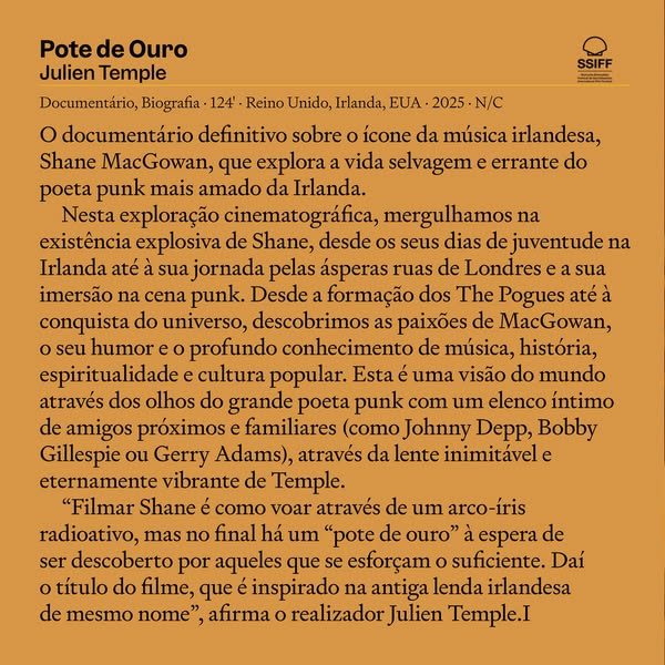 Conhecido por documentários sobre os Sex Pistols, The Clash e Joe Strummer, o realizador britânico entrega agora uma viagem crua, poética e irreverente à vida de Shane MacGowan, figura central da cultura punk celta e da música irlandesa contemporânea.
