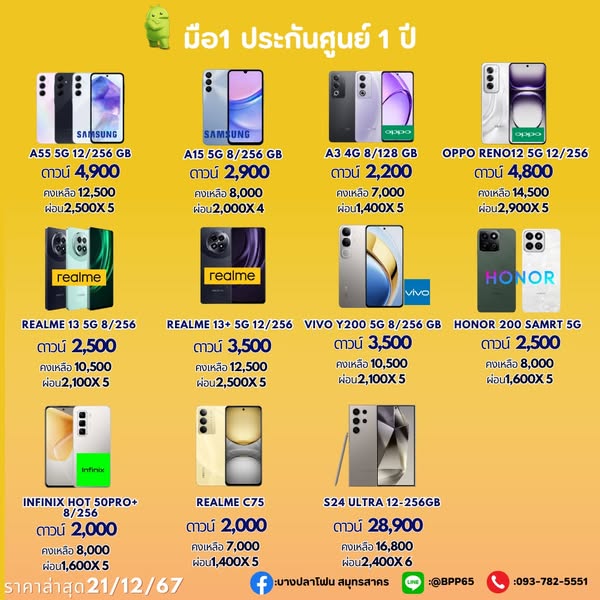🆗เอกสารไม่ยุ่งยาก เตรียมบัตรประชาชน+เงินดาวน์ ไม่มีบวกเพิ่ม 🆗 มีหน้าร้าน เครื่องศูนย์ ผ่อนได้จริง 🆗 ผ่อนได้ทุกอาชีพ ทุกพื้นที่ ❌ผ่อนได้ทุกอาชีพ แม่ค้า ผู้รับเหมา รปภ พนักงานบริษัท นักศึกษา เปิดทุกวัน 11:00-18:20 ☎️สอบถามเพิ่มเติม☎:093-7825551 🎲inbox Facebook : ✅Line:@bpp65