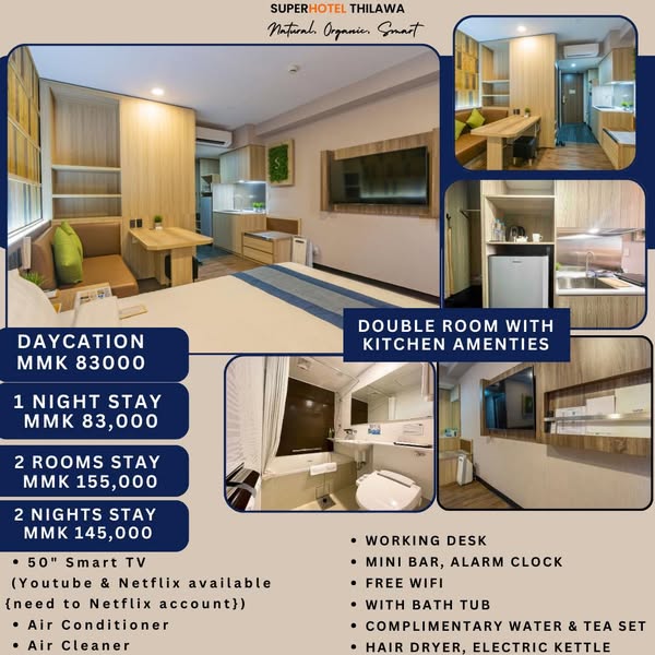 ရန်ကုန်မြို့နဲ့ မဝေး တဲ့ 𝐒𝐮𝐩𝐞𝐫 𝐇𝐨𝐭𝐞𝐥 𝐓𝐡𝐢𝐥𝐚𝐰𝐚 ရှိပါတယ် နော်