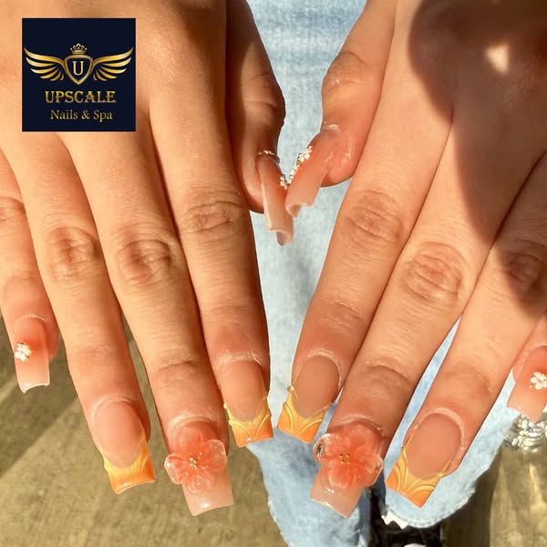 #UpscaleNailsAndSpa #LuxuryManicure #SpaPedicure #NailArtDesign #SelfCare #NailGoals #PamperYourself #FloralNails #FrenchTipsWithFlair