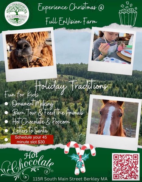 搜索关键词 farm visit, family activity, holiday event, ornament making, live music, animal farm, supporting education, winter farm, Full Envision Farm, barn tour优势 Family-friendly activities,Live music and campfire,Support local education,Animal interaction