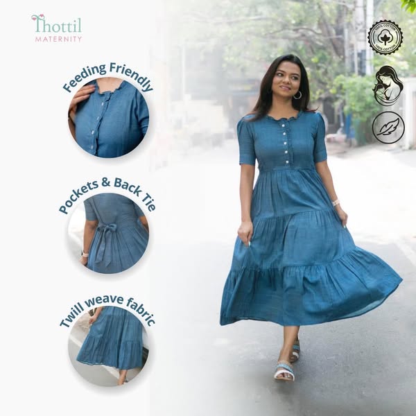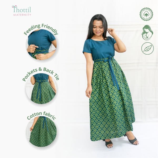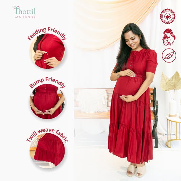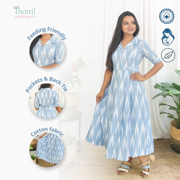 搜索关键词 maternity dress, nursing dress, pregnancy clothing, handloom cotton, comfortable maternity, elegant maternity wear, polka dot dress, feeding access dress, breathable fabric, magenta maternity优势 Soft, breathable handloom cotton fabric,Vibrant magenta color with blue polka contrast prints,Elegant design with relaxed fit,Convenient feeding access for nursing mothers