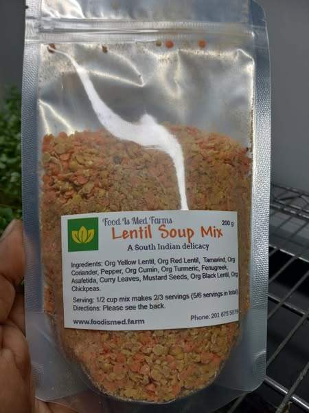FOOD IS MED FARMS has a delicious South Indian vegan lentil soup. Served warm at the market (or take-home) and also available as a packaged mix you can use to make at home.