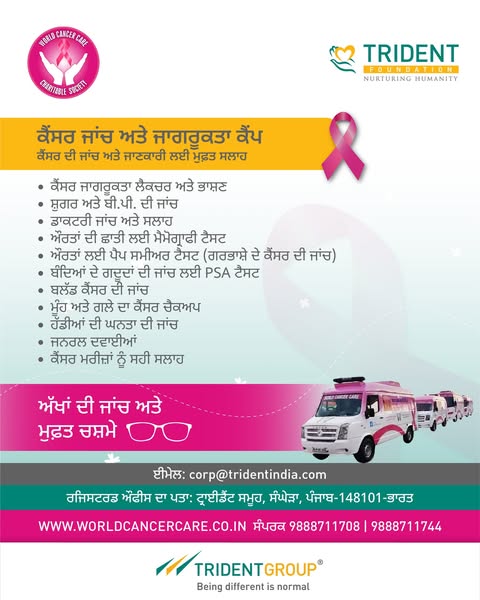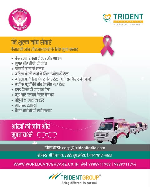 Join us for a Free Cancer Screening & Awareness Mega Camp organized by Trident Humanity Foundation (formerly TISS) in collaboration with World Cancer Care. This initiative aims to provide free cancer tests and spread valuable information on cancer prevention and early detection.