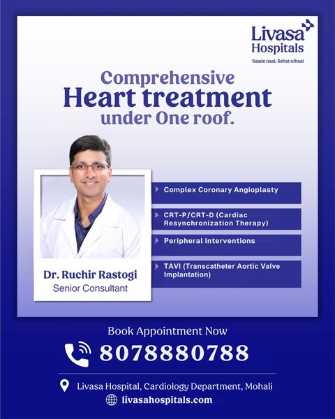 搜索关键词 angioplasty services, coronary intervention, Dr Ruchir Rastogi, Livasa Hospital, Mohali hospital, cardiology expert, heart treatment, experienced cardiologist, best heart doctor, heart care优势 Experienced Doctor,Comprehensive Services,Reputable Hospital