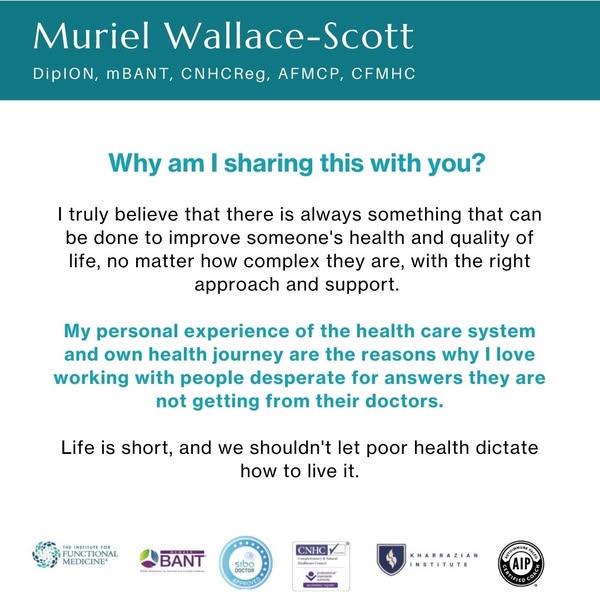 “I have a passion for complex cases. I specialise in autoimmune disease, mould illness / CIRS, gut health, SIBO, MCAS and unexplained symptoms.”