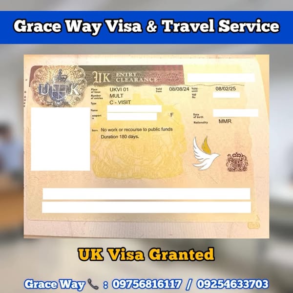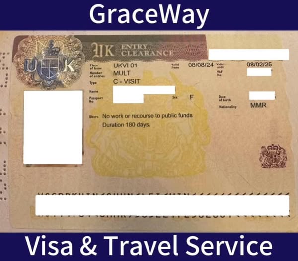 搜索关键词 Grace Way visa travel, Myanmar visa service, Flight ticket booking, Travel agency Myanmar, UK visa application, Schengen visa assistance, Canada visa services, US visa help, Trip planning service, Travel insurance Myanmar优势 One-Stop Service,Former Officers from Visa Application Centers,Document Check and Consultation,Application Form Filling,Biometric Appointment Arrangement,Comprehensive Visa Services (UK, US, Canada, Australia, Schengen, etc.),Flight Ticket & Hotel Booking,Trip Planning,Notary Services,Insurance Services