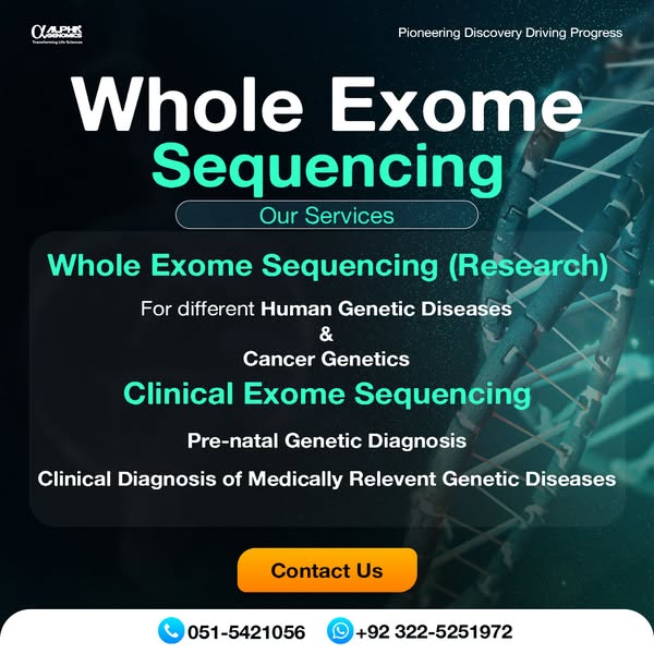 "Unlocking insights at the genetic level! 🌐✨ Alpha Genomics offers Whole Exome Sequencing (WES) to decode your DNA for personalized health solutions. Discover the power of genomics in identifying genetic variations linked to diseases and guiding precise treatment plans. Your health journey, empowered by science! #AlphaGenomics #WholeExomeSequencing #PersonalizedMedicine #Genomics"