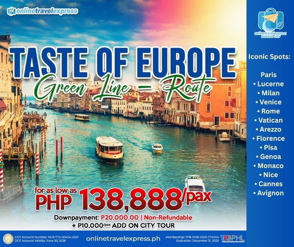 搜索关键词 Europe tour package, group travel Europe, Europe vacation package, affordable Europe tour, single line tours, Europe all inclusive, travel agency Philippines, Europe travel deals, best Europe tours, curated travel itineraries优势 Hassle-free all-in group packages,Trusted by thousands of travelers,Perfect itineraries curated by expert planners
