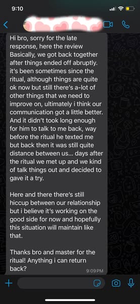 SOME TESTIMONIALS AFTER LOVE BINDING RITUAL/SPELL