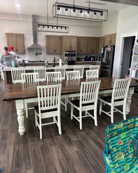 Today we delivered another awesome table set to a new home in marianna! This set consists of 8 chairs, 5 swivel bar stools, and 1 massive table. Custom built, custom finished, and delivered!
