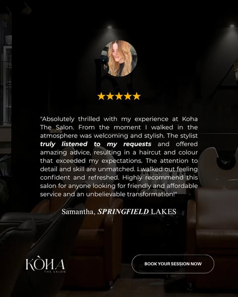 搜索关键词 hair transformation, koha salon, custom blonde, seamless extensions, luxury hair treatments, hair stylist ipswich, beauty salon springfield, hair salon corinda, best hair transformation, effortless hair styling优势 Customized styling,Expert stylists,Luxury hair treatments,Seamless extensions
