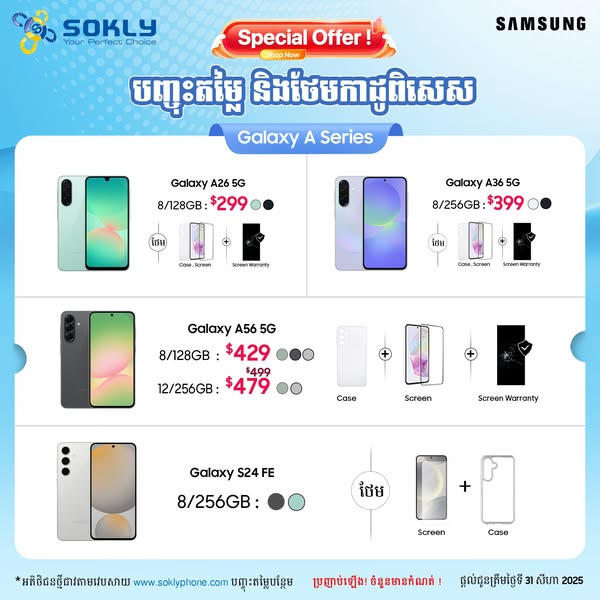 搜索关键词 Samsung phone tablet, Sokly phone store, Cambodia mobile, Discount mobile phone, Mobile deals cambodia, Smartphone specials, Budget friendly Samsung, Latest tablet models, Buy phone online, Sokly phone promotion优势 Affordable prices,Wide selection of models,Special offers and gifts,Discount for new online customers