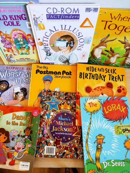 📚📖 Give your kids the gift of reading with our collection of gently used, large format storybooks.